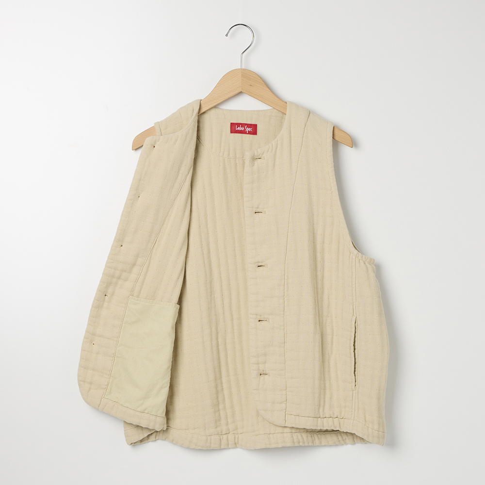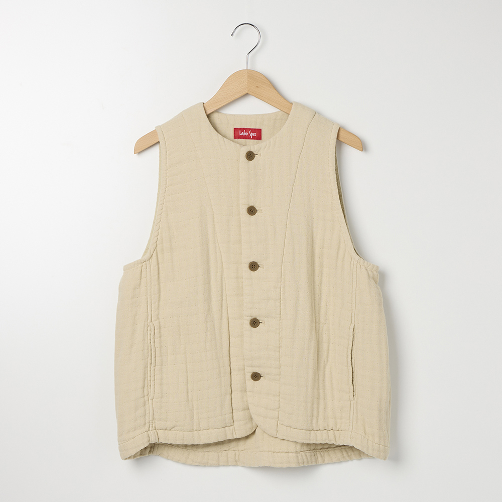 デコボコな表情感が特徴の綿100%のガーゼベストです。
