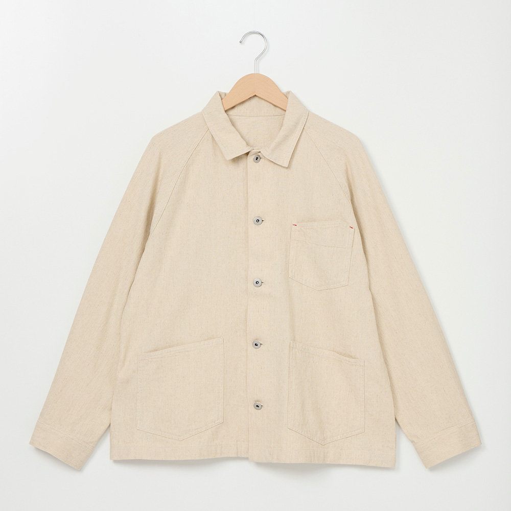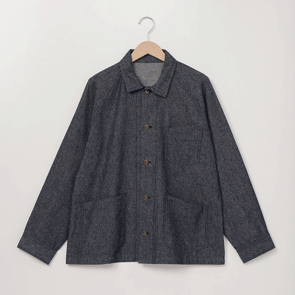 ラグランスリーブがリラックスした着心地で、Wステッチや金属のタック釦がワークテイストなブルゾンです。
