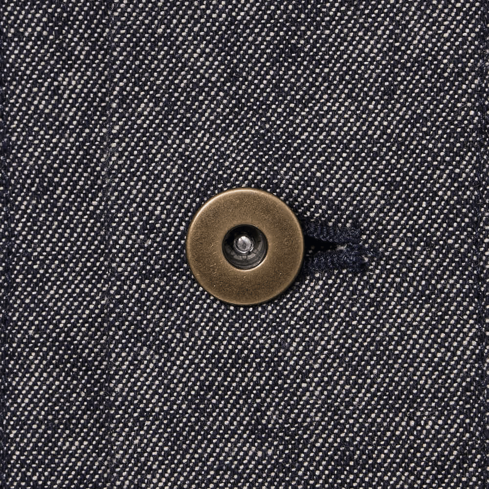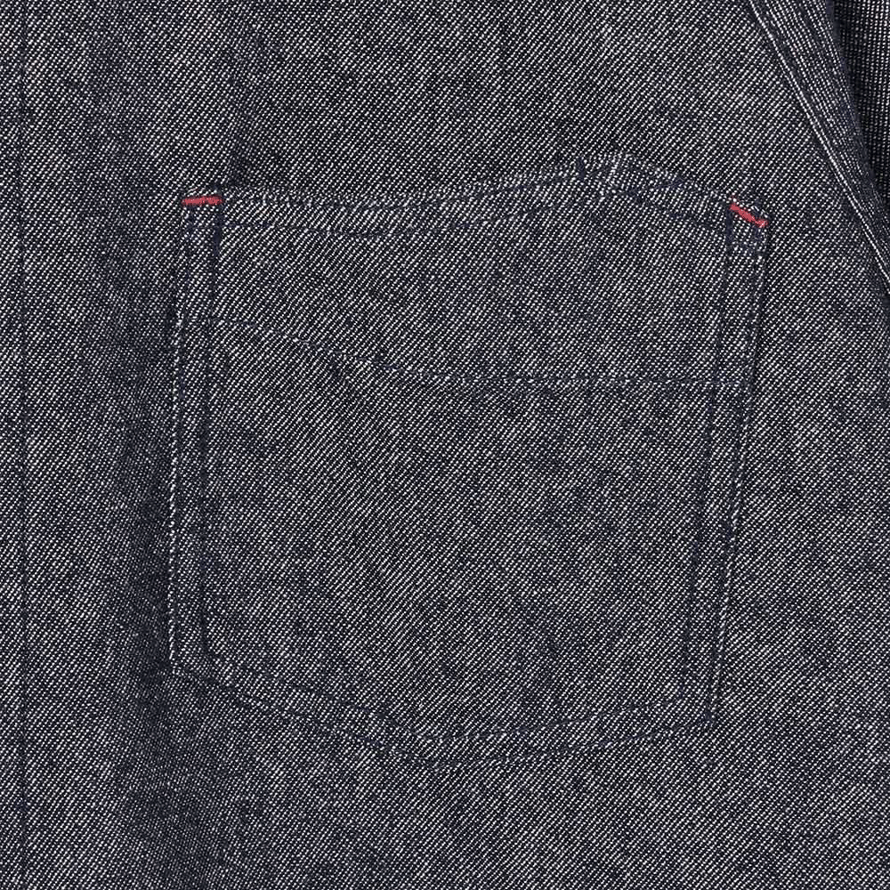 雰囲気のあるオートミールカラーとデニム調のネイビーの2色展開で、赤い配色ステッチがアクセントになっています。