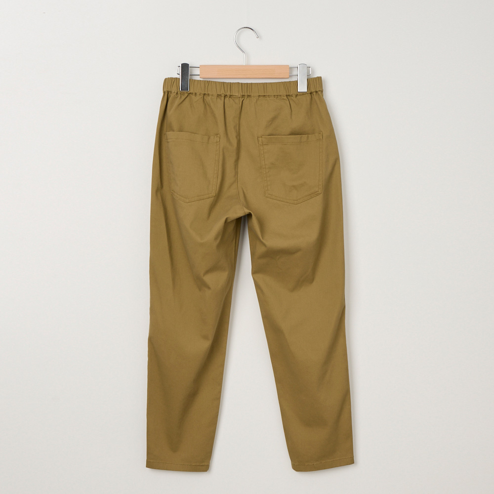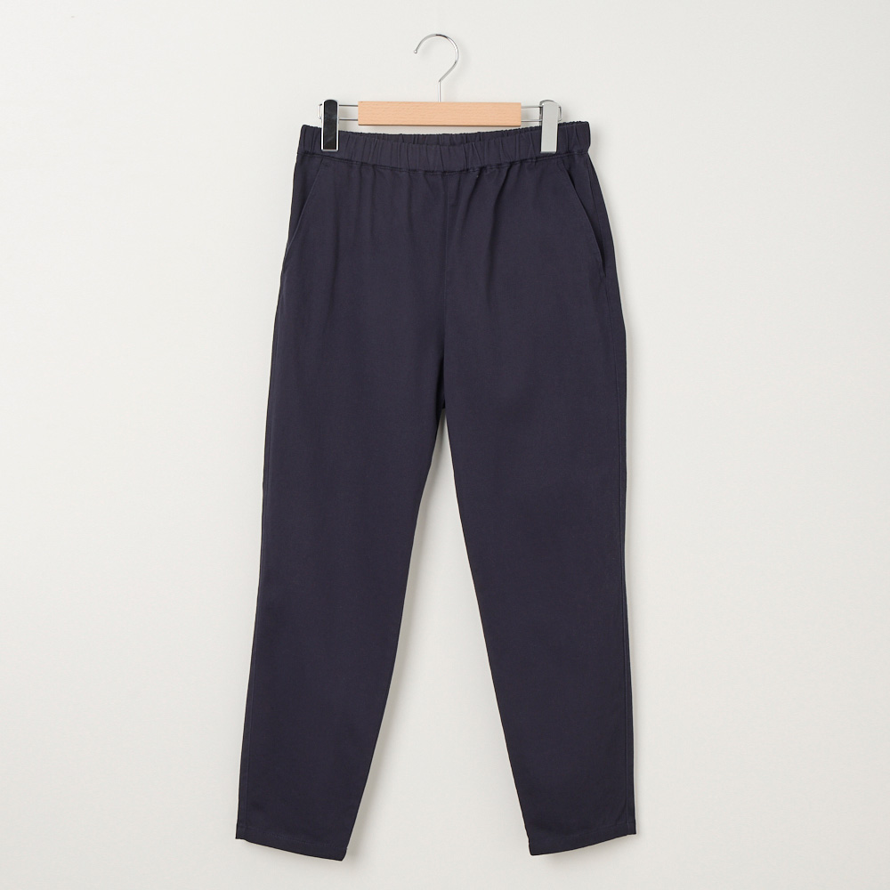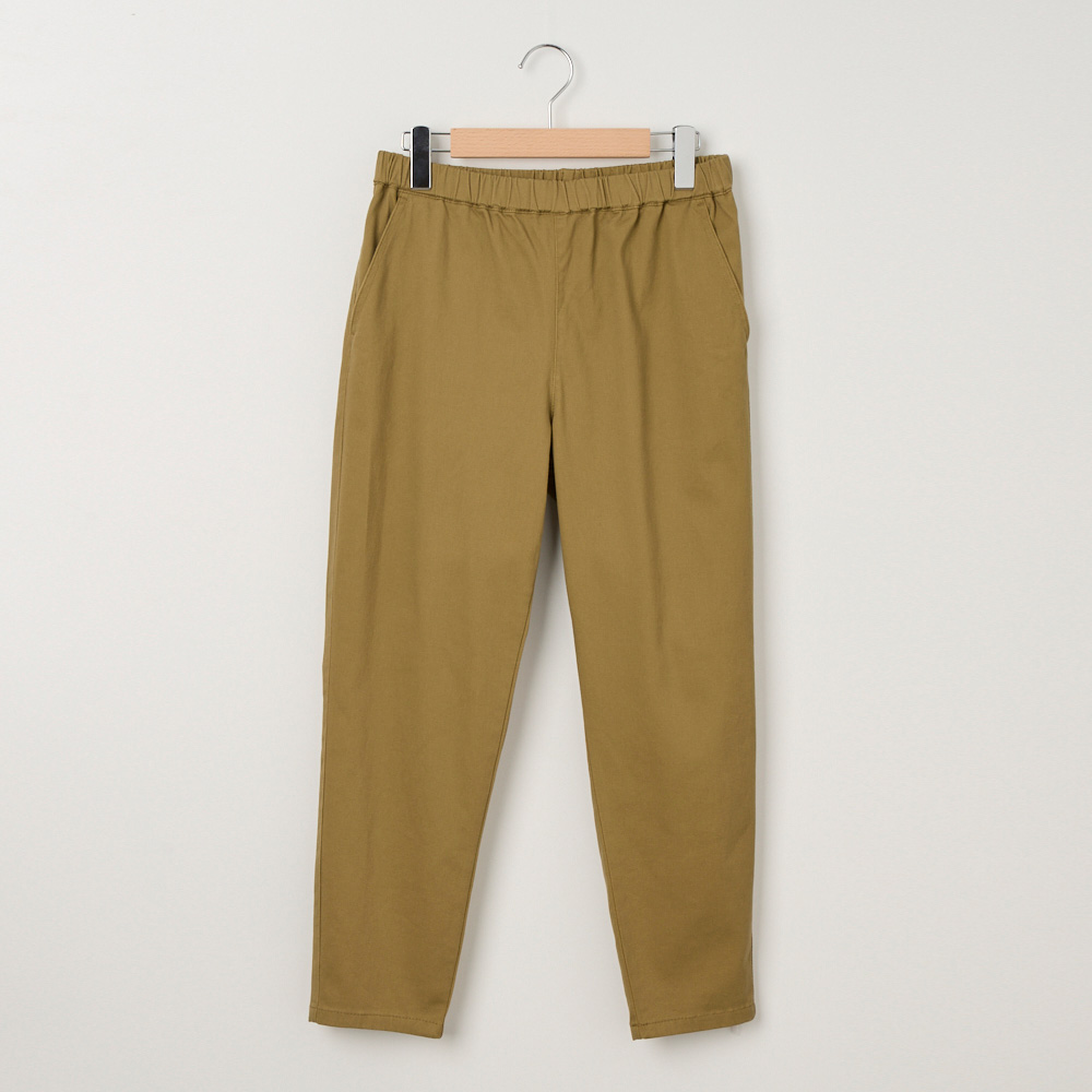裾に向かって細くスッキリとした穿きやすい定番のシルエットです。ウエストは総ゴムで内側の紐で調節できます。